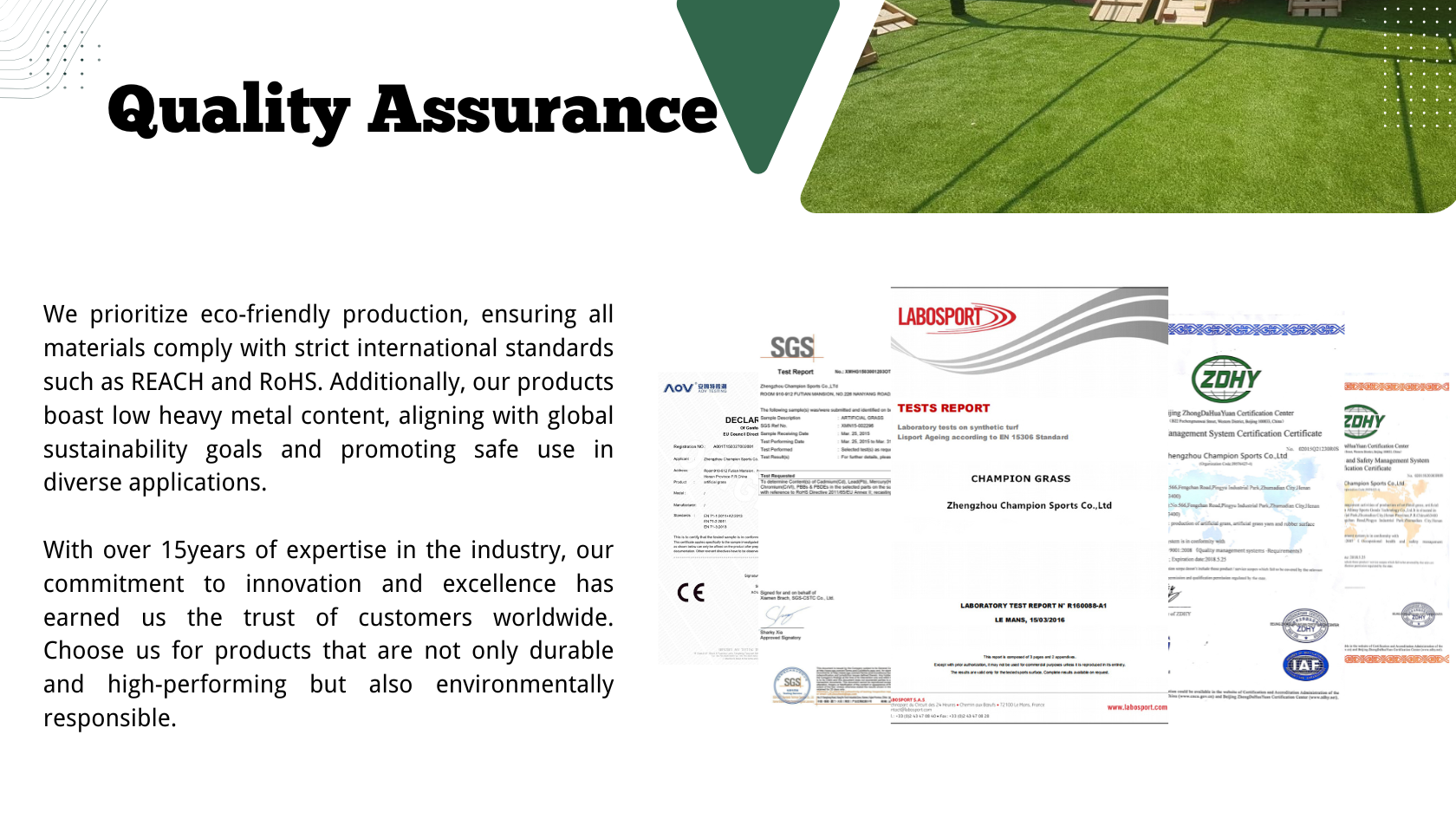 ZZ CHAMPION SPORTS SPECIALIZES IN ARTIFICIAL GRASS INDUSTRY MORE THAN 15 YEARS.